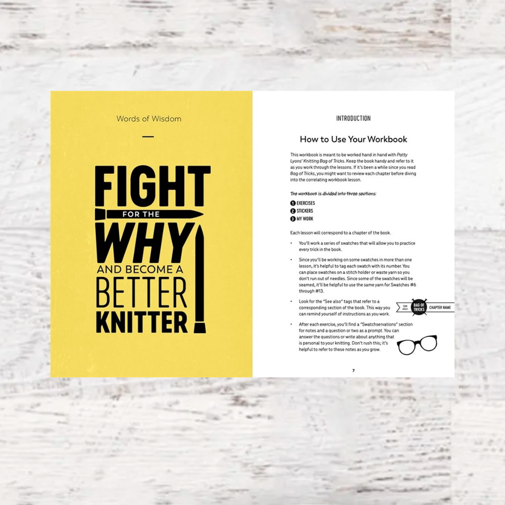 The exercises and lessons in The Official Workbook are new, but Patty recommends that you have her first book to hand to get the most out of it. There are references to Patty Lyons' Knitting Bag of Tricks in The Official Workbook so you can explore the tips and techniques in more detail. So, if you’re a tactile learner or you want to get the most out of Knitting Bag of Tricks, you’ll want to pick up this practical workbook and use it as you read along with the book.