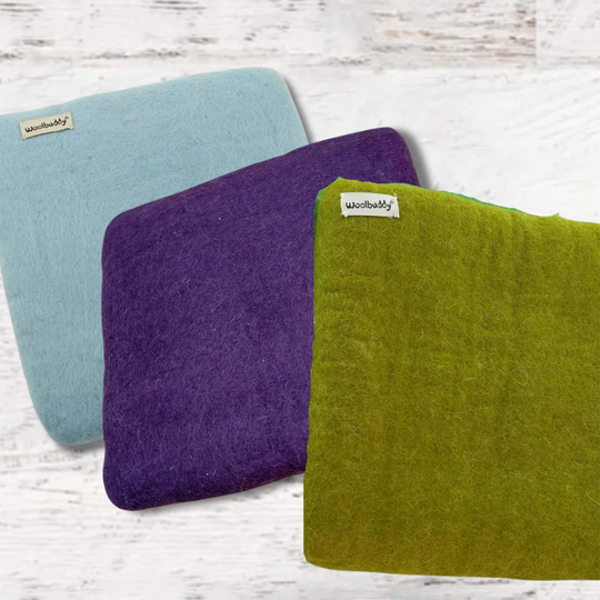 Speed up your needle felting process, use wool for your work surface! These 100% natural wool needle felting mats are made of solid wool which has been wet felted to give it great durability and the perfect amount of support when using it as a work surface for needle felted sculptures and wool paintings. It is solid enough to support your work without it sinking into the pad, but has just the right amount of giving to take repeated pokes of your felting needle without sacrificing the working surface of the block or causing needle breakage.  Made in Nepal.