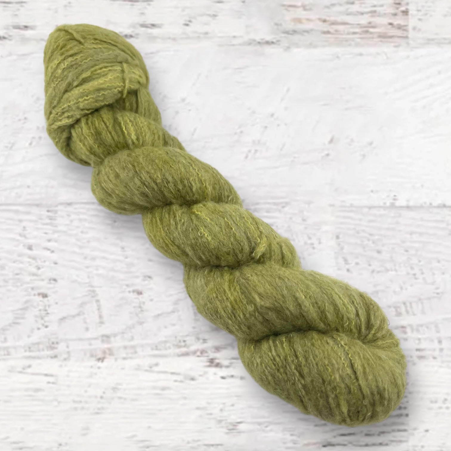 This yarn is so soft and cozy, wearing it will feel like being embraced in a warm cocoon. Its unique texture can be combined with other yarns, or worked solo for super snuggly projects!