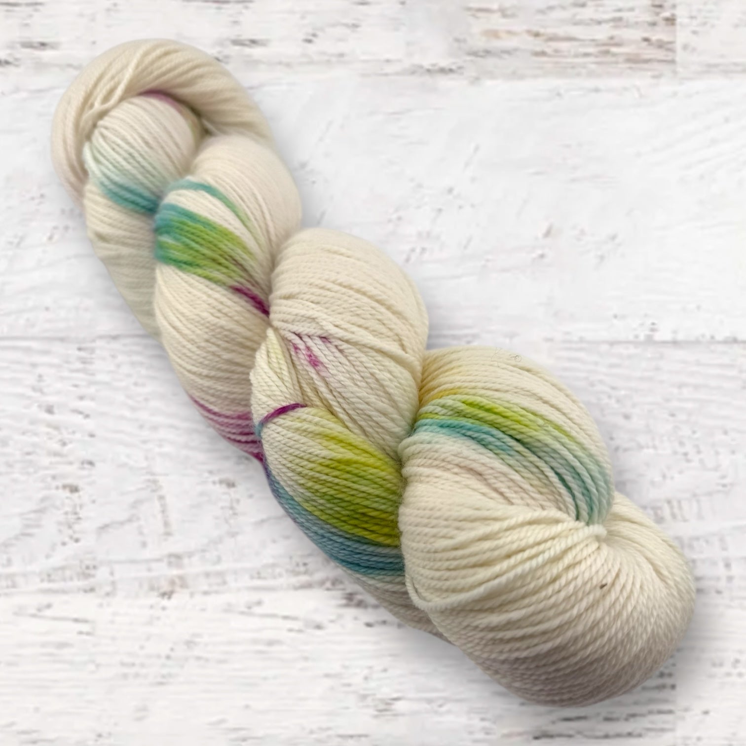 A perfect blend of warmth and strength to make a hardwearing sock yarn that can stand up to your affection and abuse. Tough Love Sock is our best-selling yarn and knits up beautifully into fine-gauge sweaters, small shawls, as well as socks! Spun from 80% superwash and super soft merino and 20% nylon, this 3-ply yarn is so versatile — knit it firmly for hard wearing socks, knit it loosely for drapey shawls, or knit it doubled for a great worsted weight substitute.