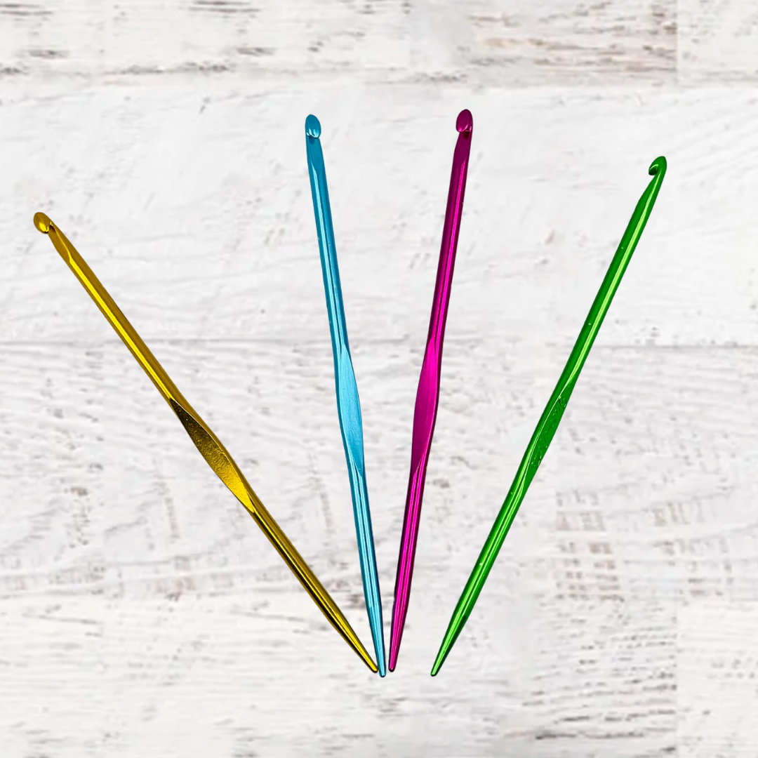 The tool we have in every project bag! One end has a tapered crochet hook and the other a pointy end for getting into tight places!