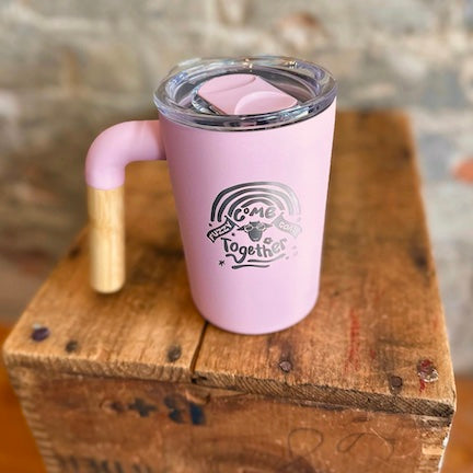 Cadence discovered this mug at a sweet coffee shop when she was having her own daytrip, albeit a daytrip in the middle of a Maine vacation. We love that it has a handle that keeps your knuckles from the heat of the mug, and that the bottom is tapered to fit into cup holders. All perfect for your own day trip!