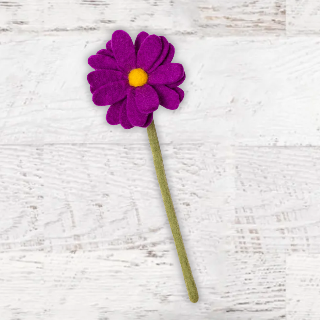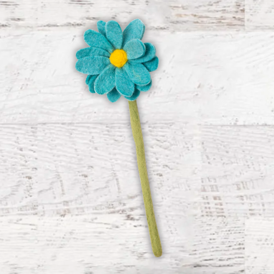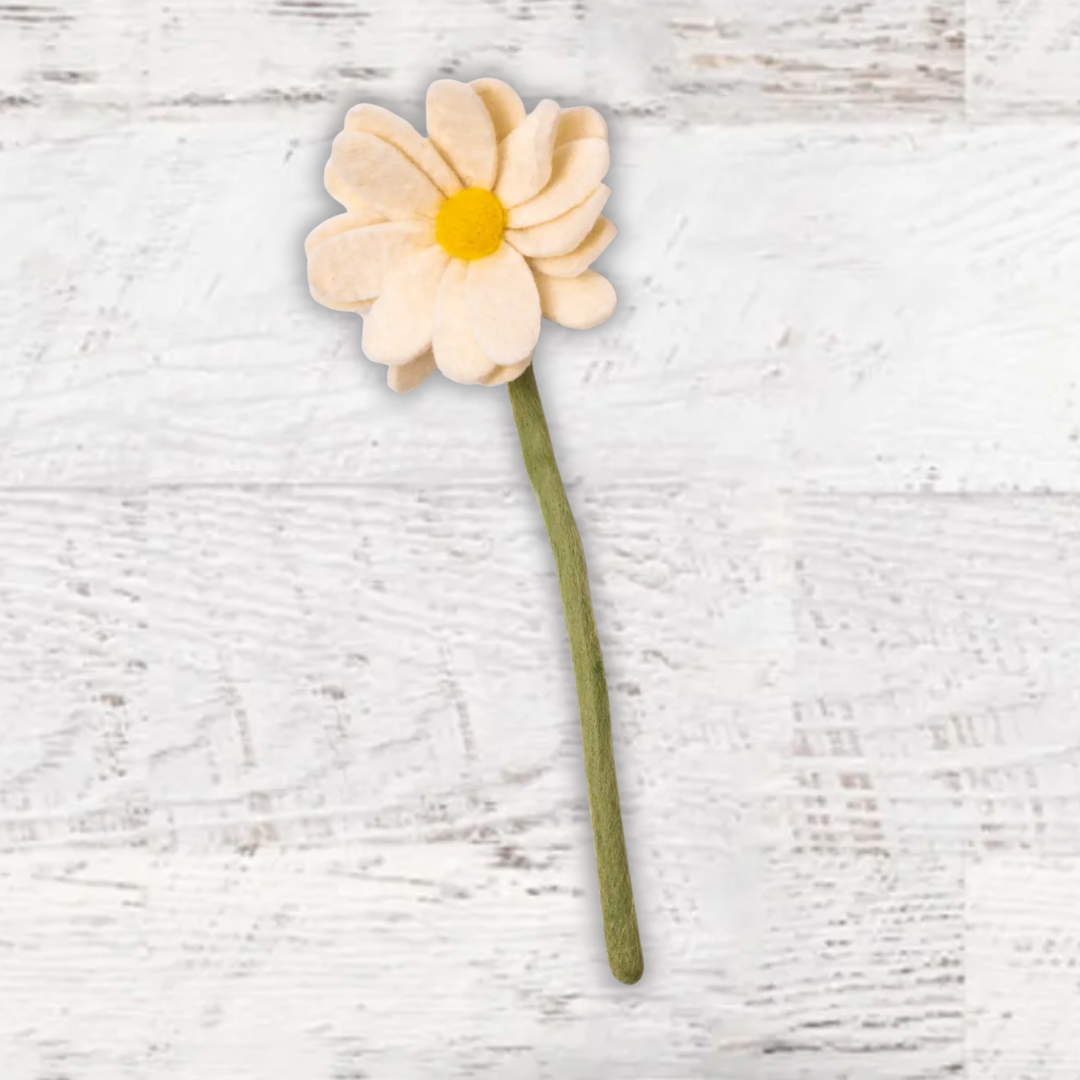 Our Felt Daisies are the delicate, feminine & everlasting version of its real world counterpart! Handmade by women artisans in Nepal, this simple yet adorable felt flower will bring joy and color to your home with zero worry of wilting. Pick your favorite color, or grab all four shades for a whimsical bouquet of spring cheer! Felted Wool Azo-free dyes, eco-friendly and non-toxic 13" tall X 5" wide