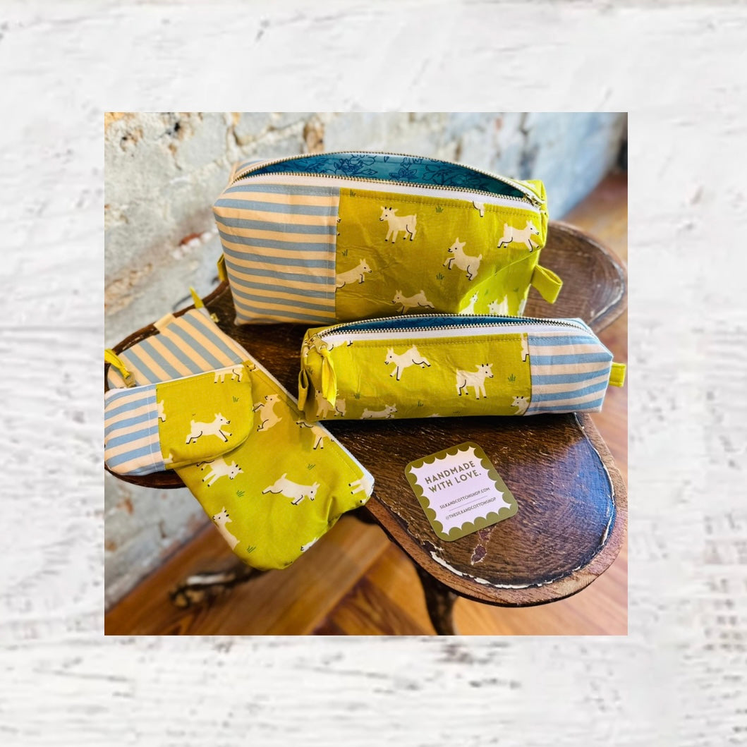 About the Leaping Goat Set, a $136 value, is from the Silk and Cotton Shop, owned by artist Eliza Schneider-Green. Everything is made by Eliza's hand in her home studio in North Florida.