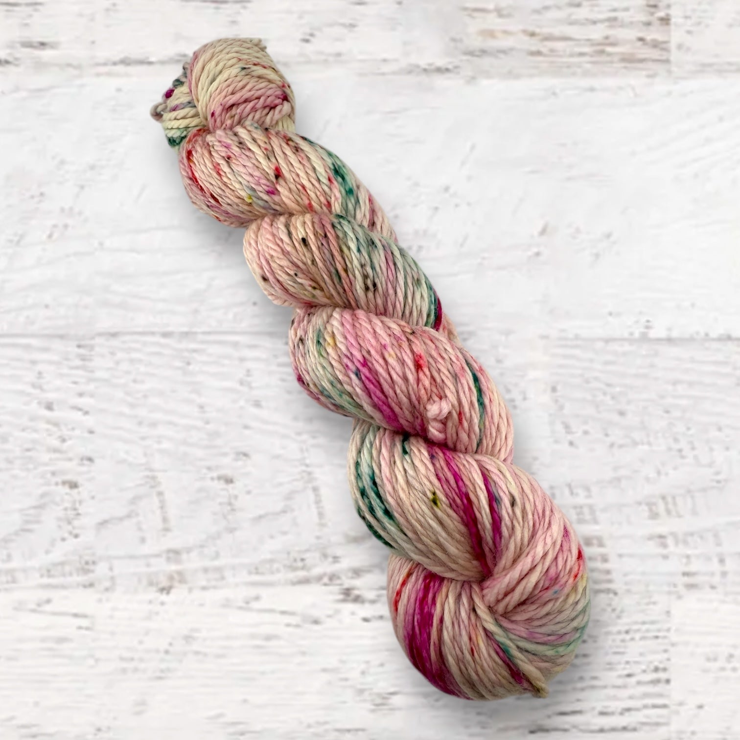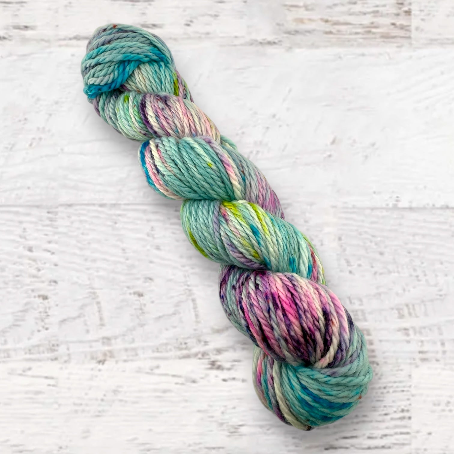 3 plies gives this base a gorgeous twist and fabulous feel. Your favorite bulky hats, sweaters, and scarves will work up really quickly and beautifully in this bodacious base.