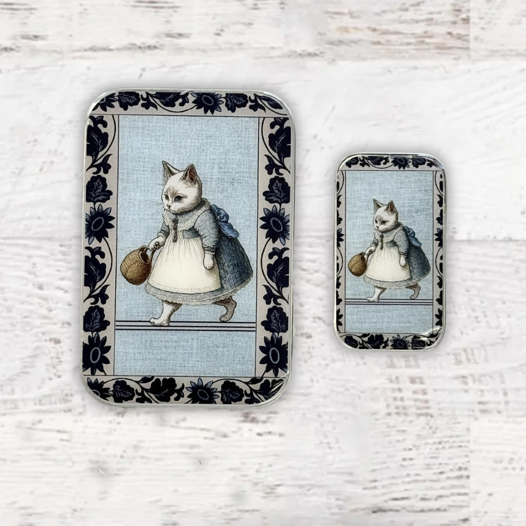 Sandy of Firefly Notes makes us the most whimsical custom tins. When choosing the perfect goat image we knew this was the one because it made us laugh out loud! Resin topped slider tin featuring vintage goat print, great for notions, jewelry, or anything you want to organize in a little case.