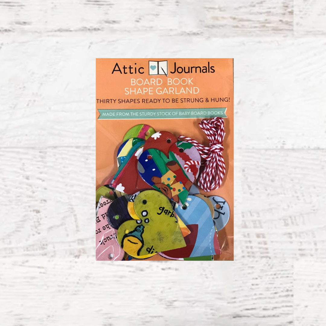 Thirty 2" hearts made cut from upcycled baby board books with 2 yards of string! Each package is an absolute variety of colors. Will you string yours in rainbow order, mix yours up, or . . . .? Sustainably packaged to make a meaningful gift. Colorful, warm, and full of character, each kit invites you to string the hearts yourself — simple DIY projects with a powerful message. Perfect for those that value sustainability, inclusivity, and handmade charm.