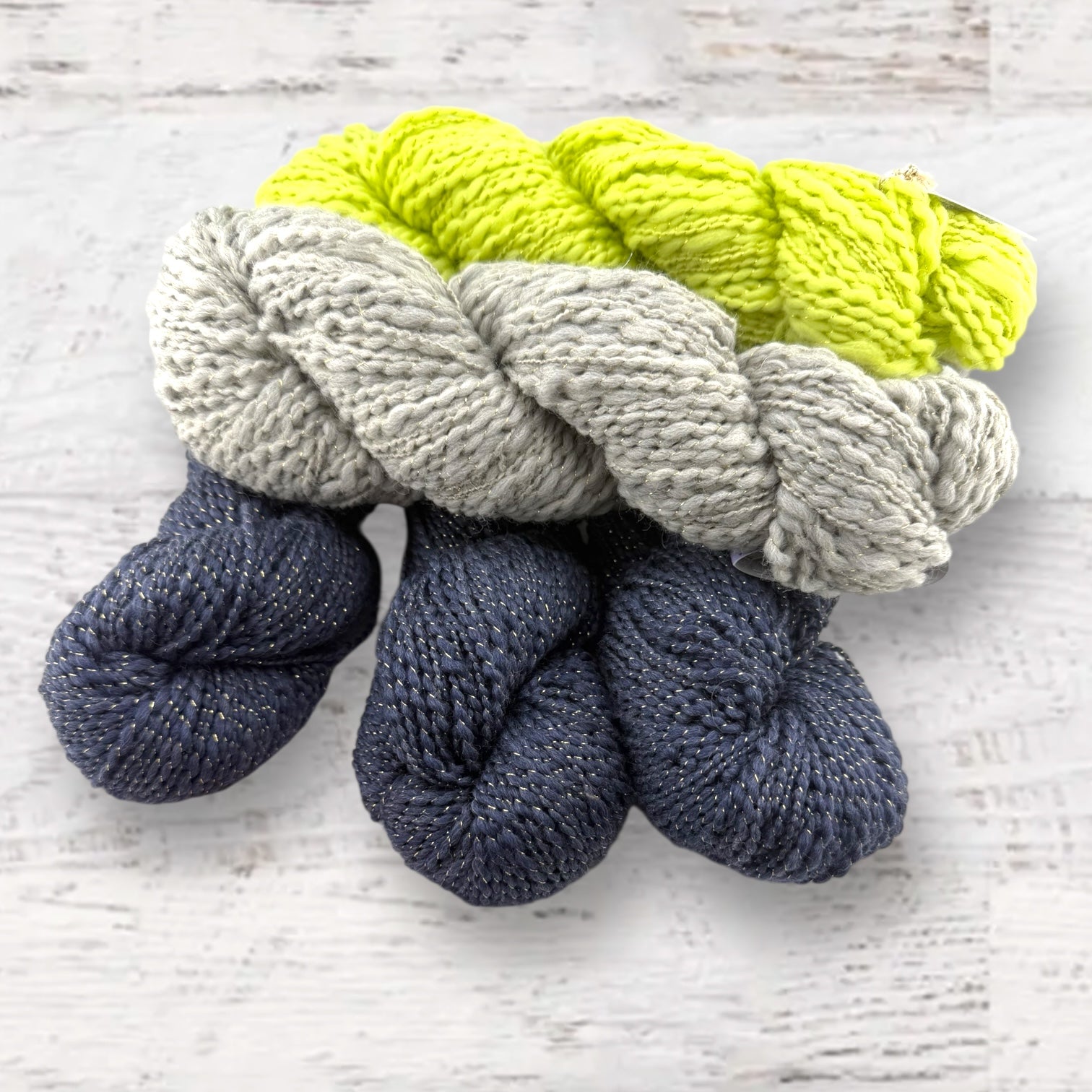 - The yarn needed to complete this project, including 8 skeins of Spun Cloud Light yarn, enough to make size 6 of the pattern