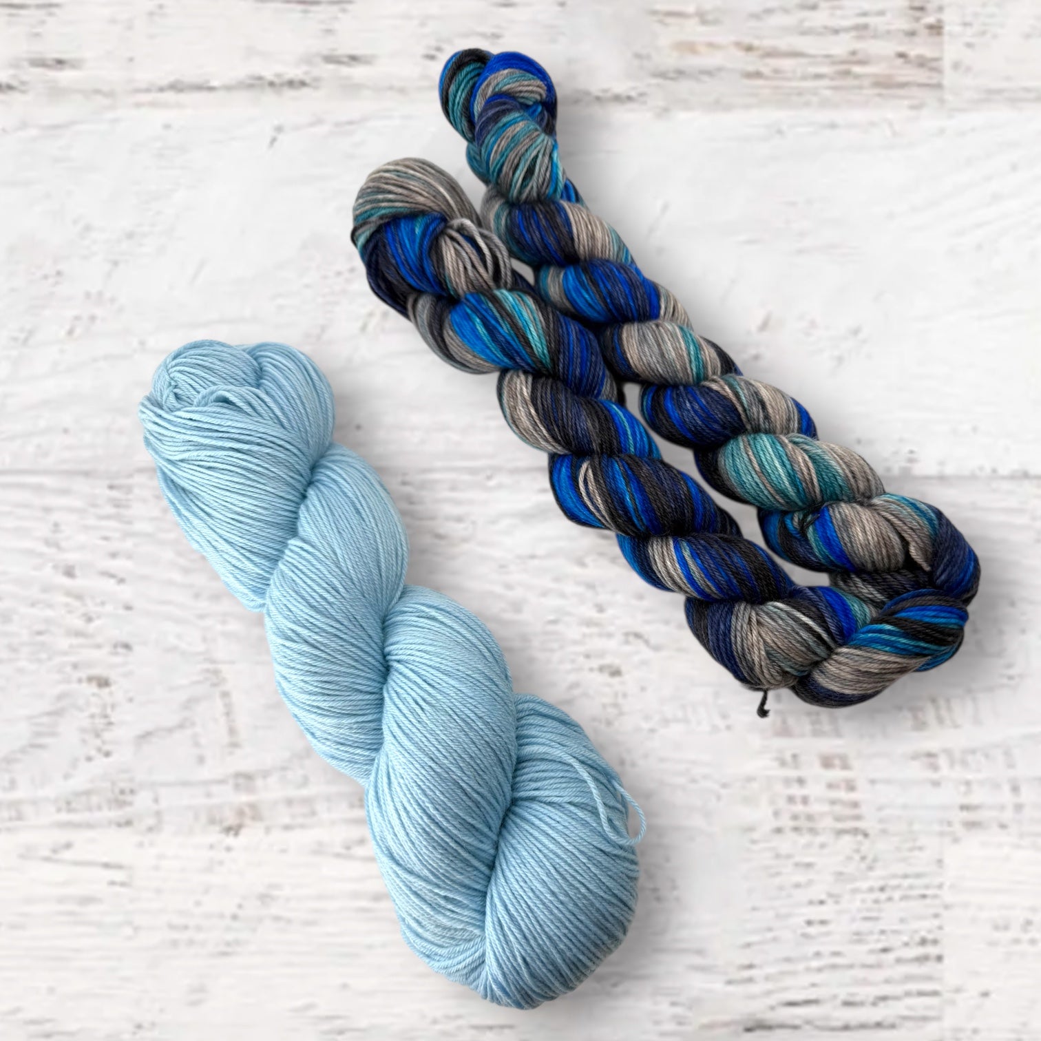 - 1 pack of Urth Yarns Gusto Echoes Sock and 1 skein of Urth Yarns Gusto Core fingering weight yarn.