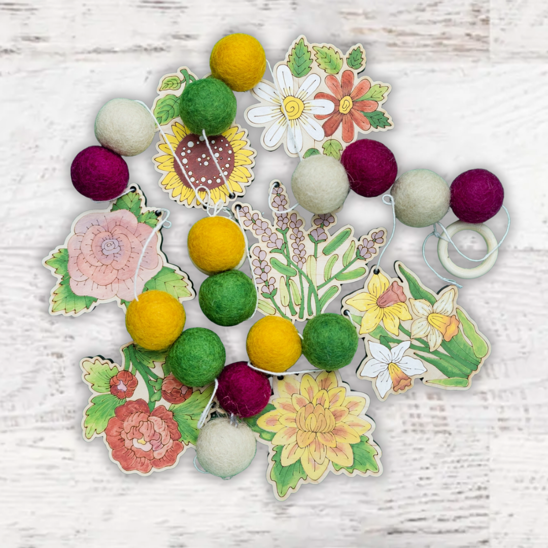 Lindsey is pleased to collaborate with Mary Engelbreit on her Mary's Garden Garland Kit, where whimsy meets nature in a delightful fusion of artistry and craft. This charming DIY garland kit, is designed to bring the magic of Mary Engelbreit's iconic illustrations into your home. Each meticulously crafted garland captures the essence of a vibrant garden, featuring a delightful array of flowers, butterflies, bees and more all inspired by Mary's timeless artwork.