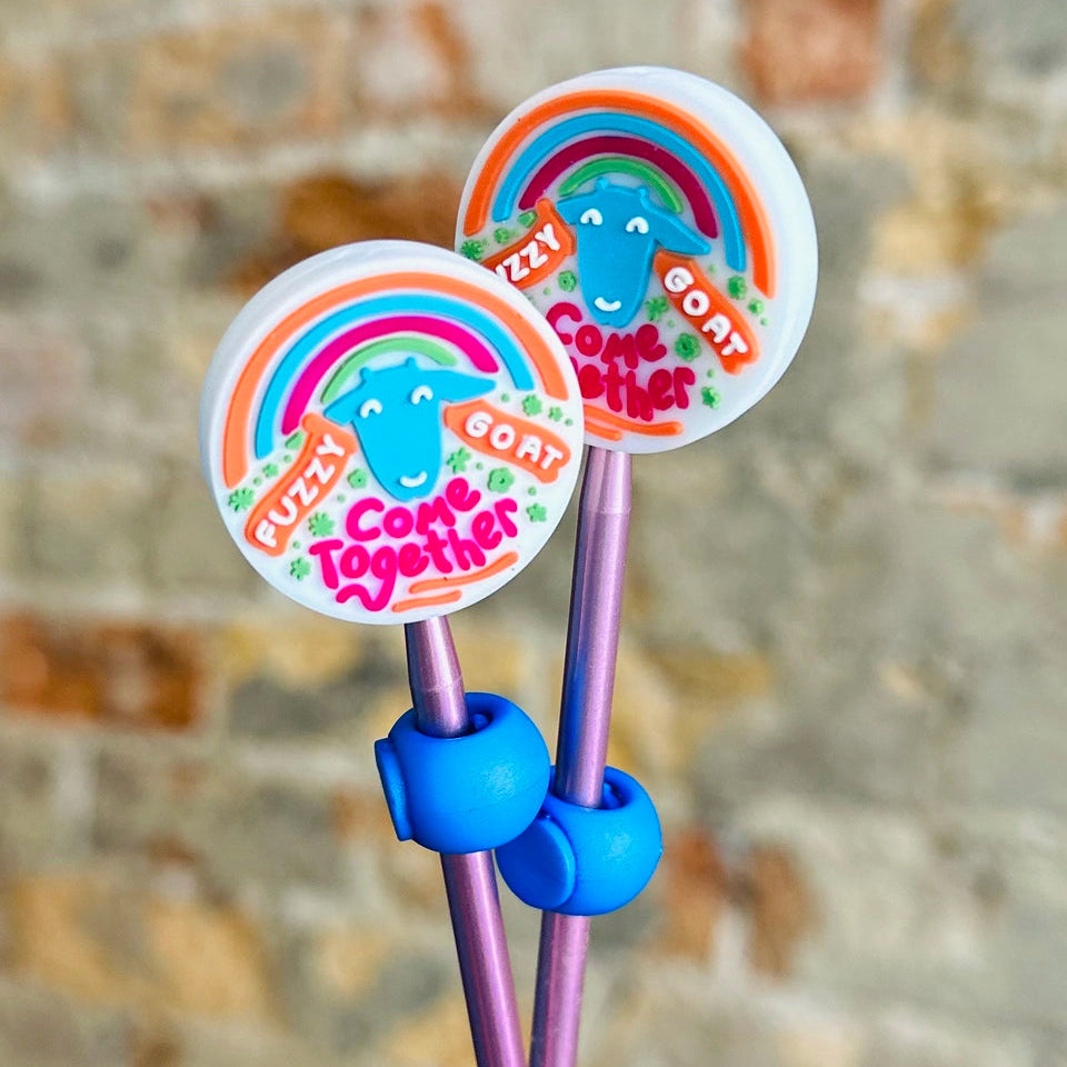 - Fuzzy Goat Stitch Stoppers: These cute stitch stoppers go on the end of your knitting needles to prevent your stitches from coming undone when your project is set down.