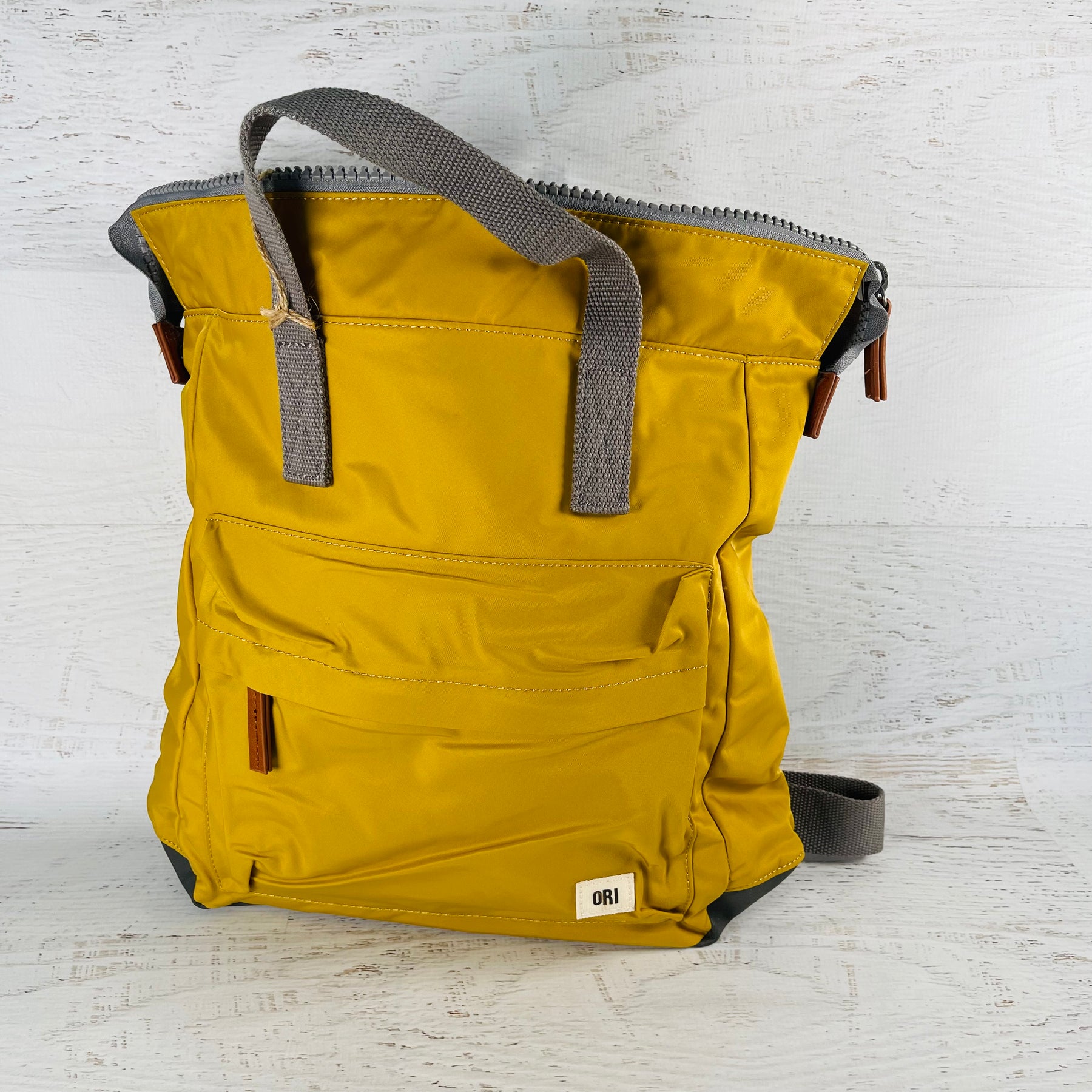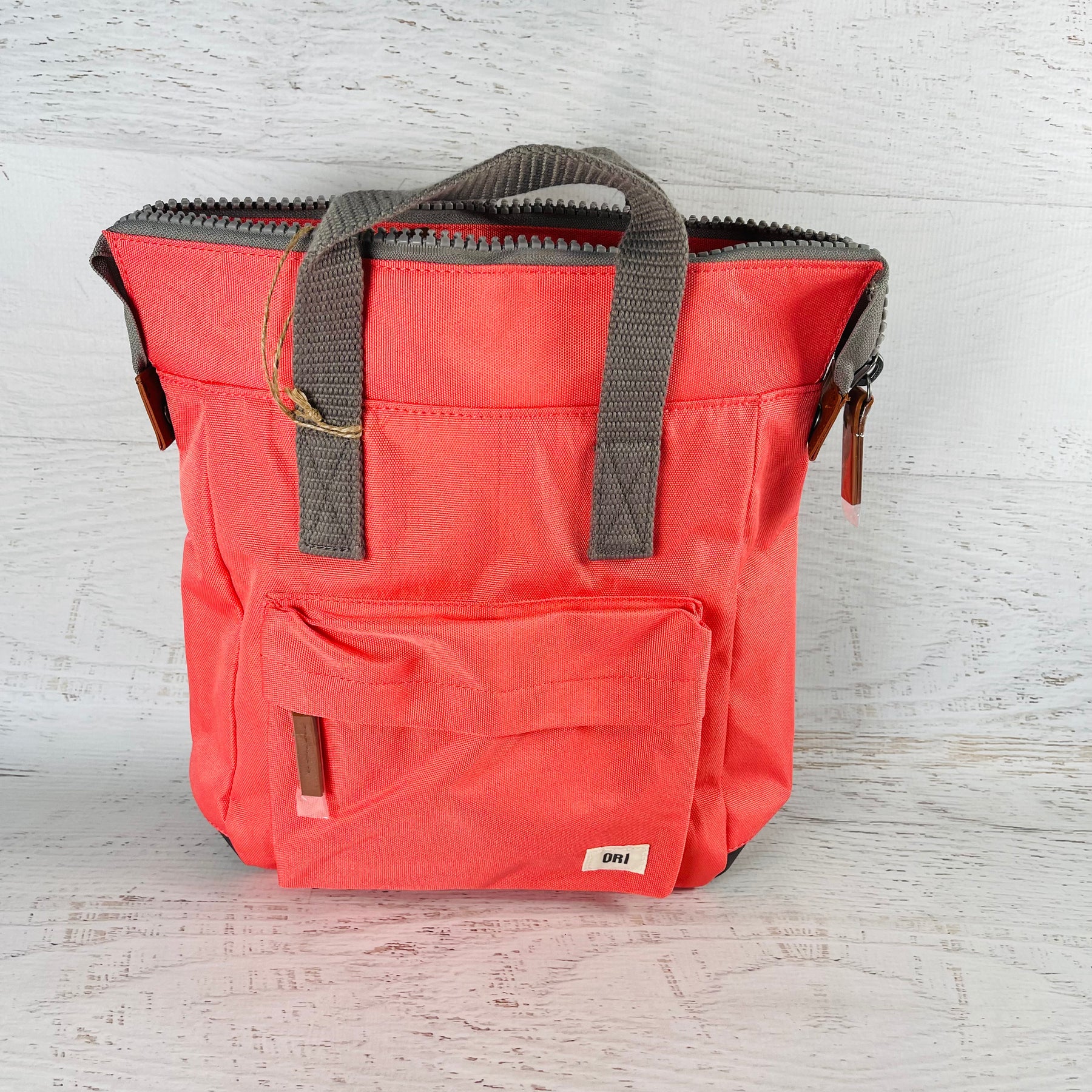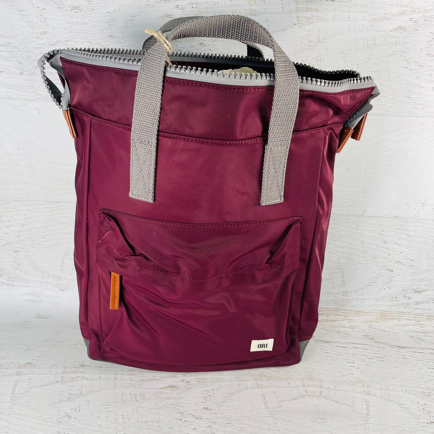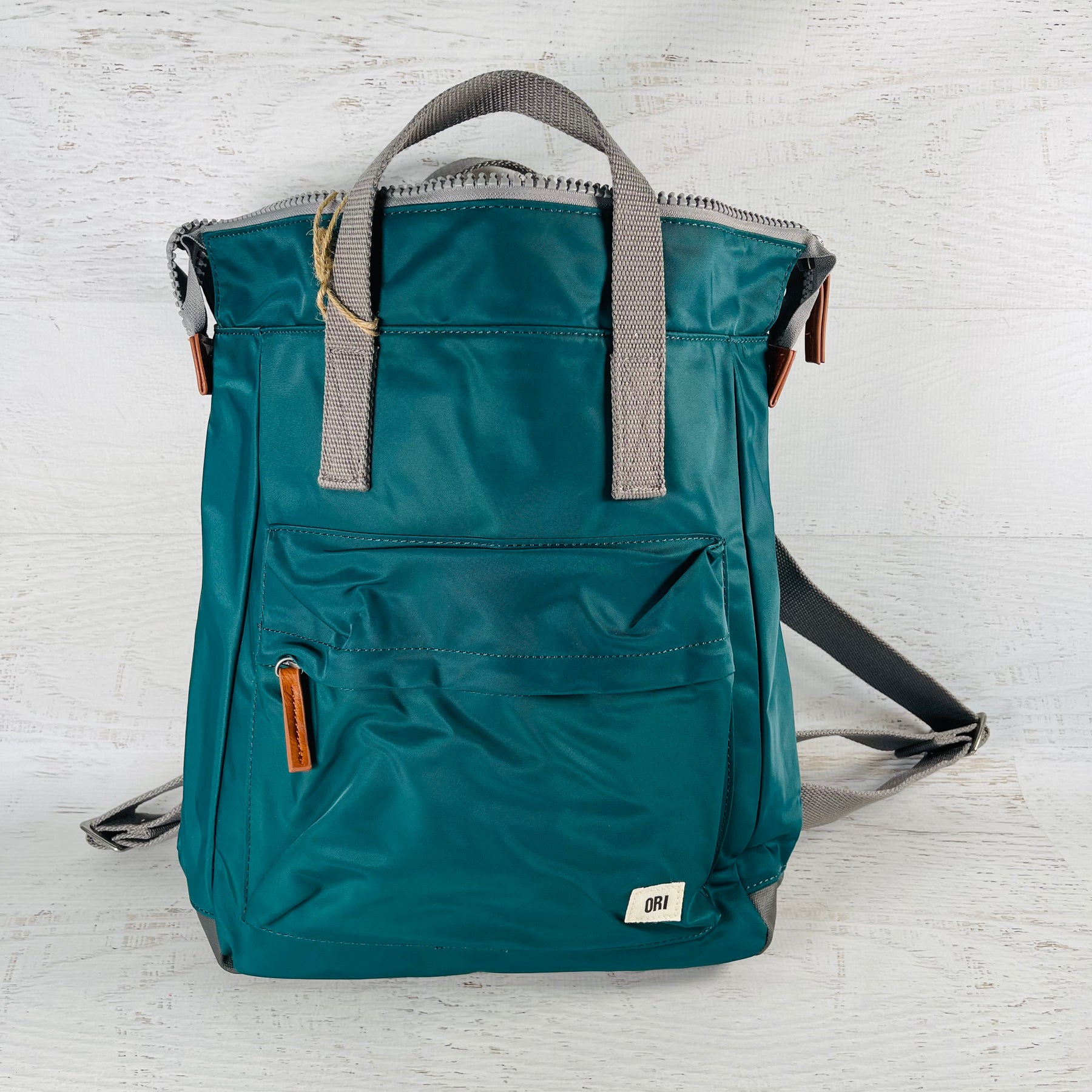 The Bantry Backpack has a chunky zip at the top. Twelve or more plastic bottles are used to make the recycled materials that make each bag, and all ORI bags are vegan friendly too!