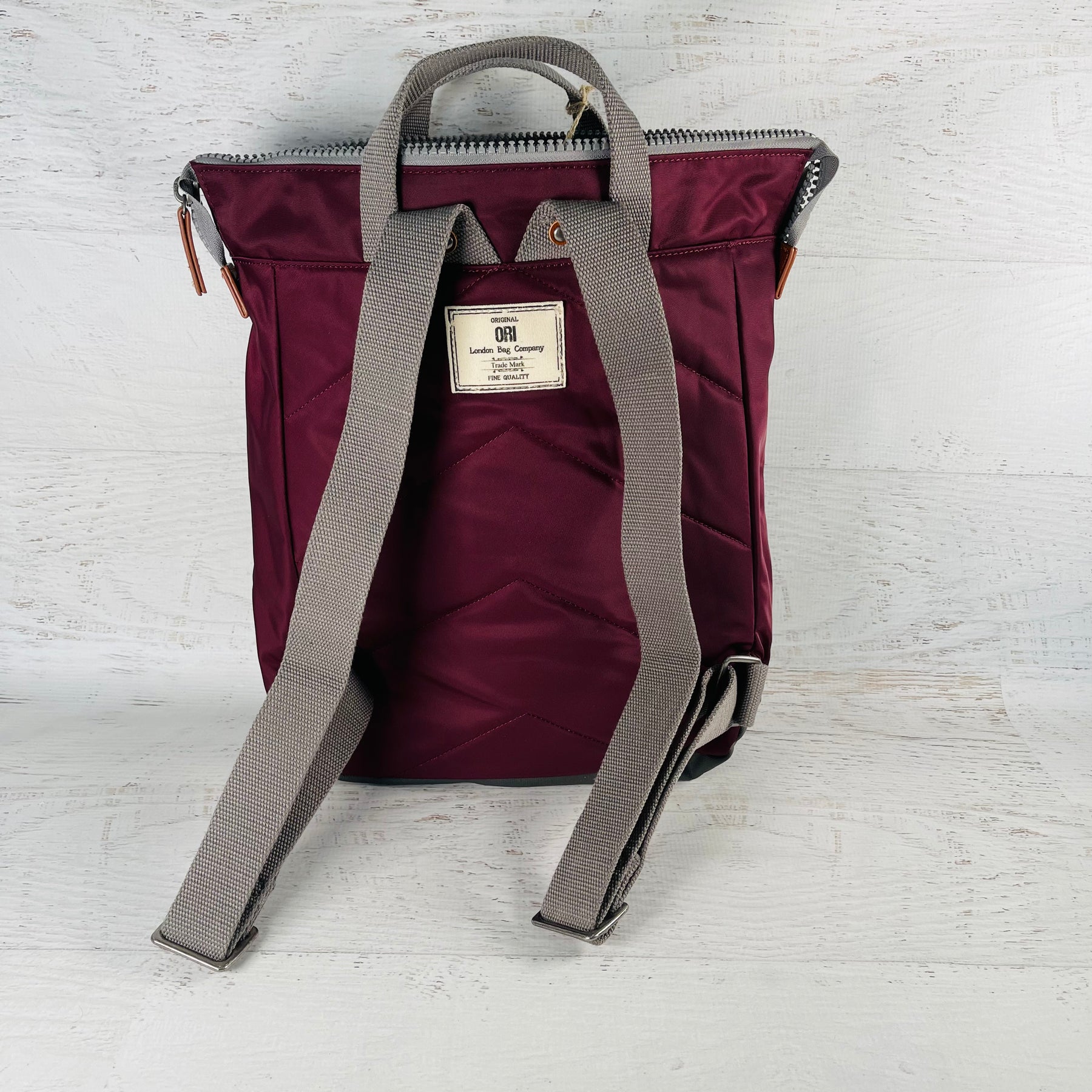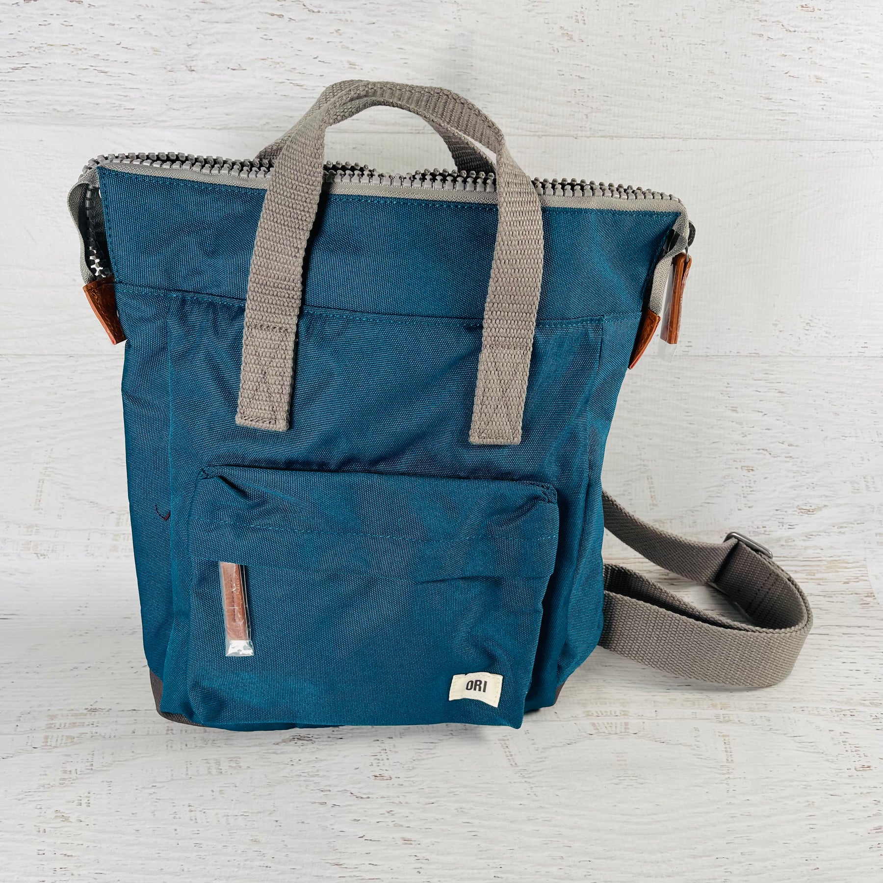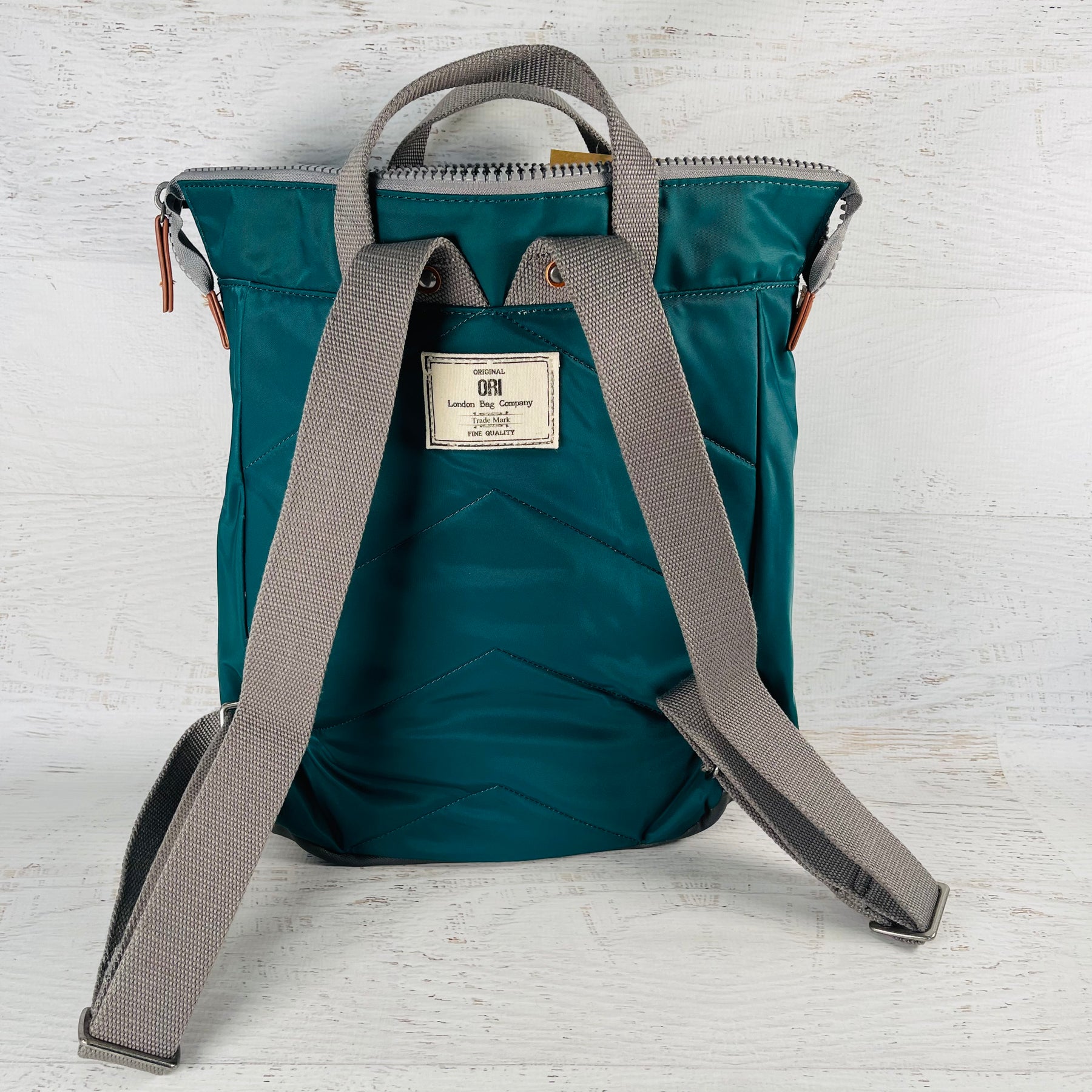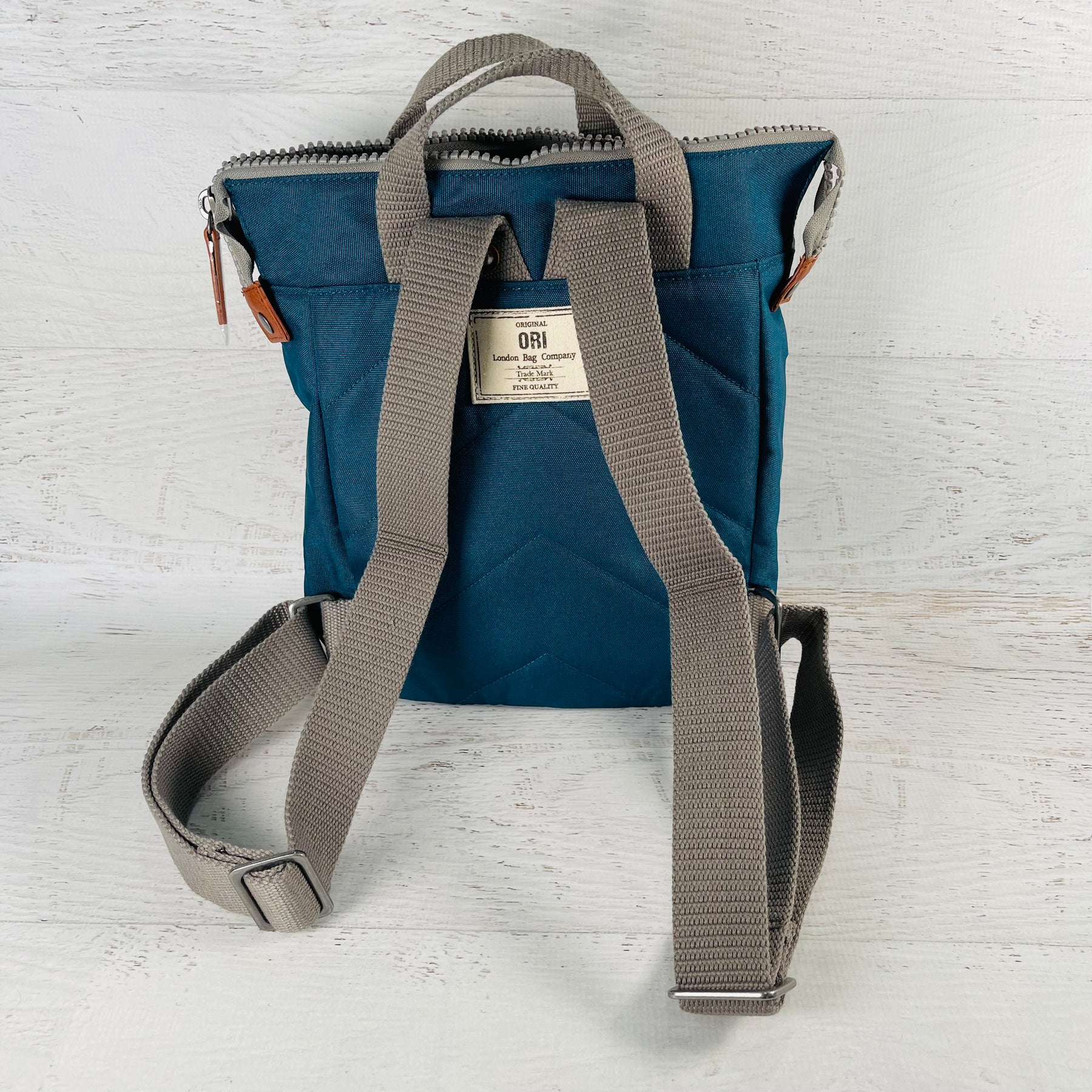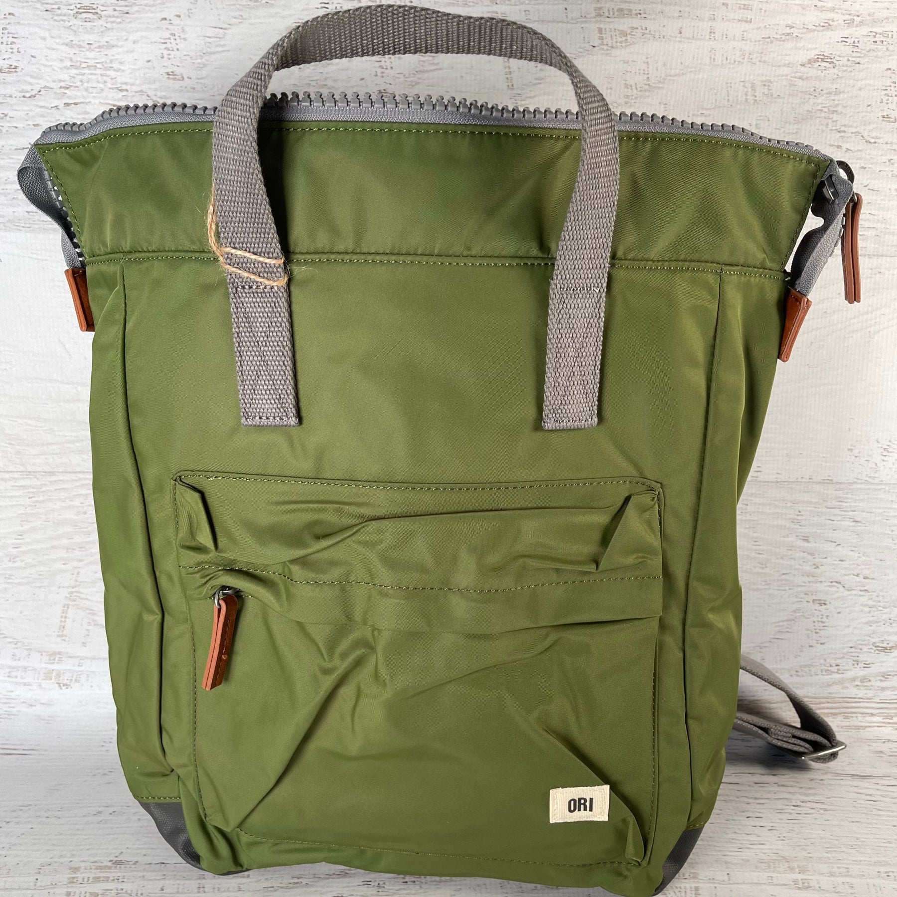 The Bantry Backpack has a chunky zip at the top. Twelve or more plastic bottles are used to make the recycled materials that make each bag, and all ORI bags are vegan friendly too!