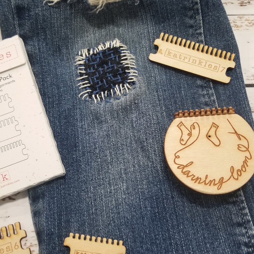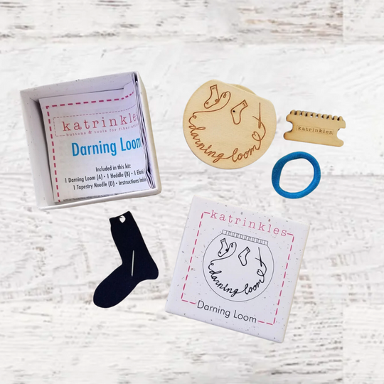 Katrinkles Darning & Mending Loom Kit includes all of the tools you need to repair a hole in a knitted garment, making it easy to do it yourself. Follow the enclosed simple instructions and you’ll be mending clothing and accessories in no time! Thanks to the unique construction of this Darning Loom, accomplishing more creative or complicated mends is easier than with a traditional darning egg or darning mushroom.