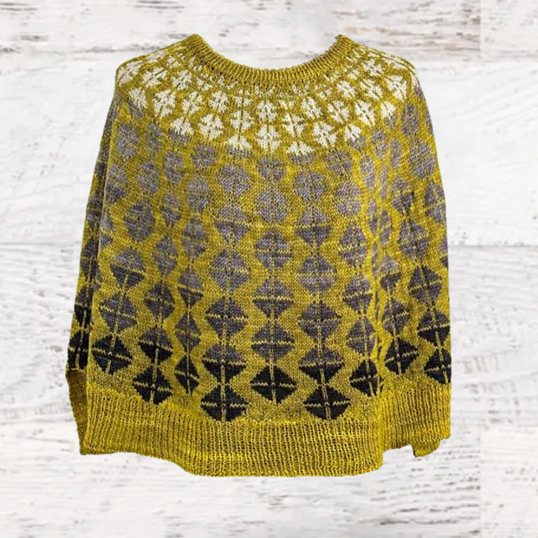 With its striking color transitions and intricate stranded detailing, this poncho is sure to turn heads wherever you go. Whether you’re a seasoned knitter looking for a new challenge or a beginner eager to dive into the world of colorwork, this pattern is sure to delight and inspire.