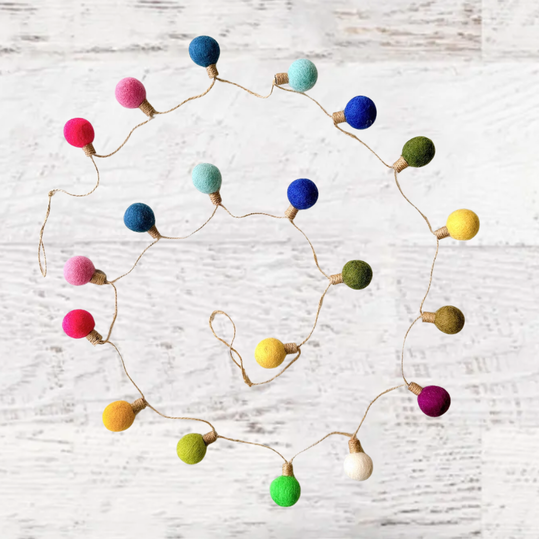 Lights Garland:  needle felted, and 3D designed. The garland is about 4' long. It looks great from any angle.