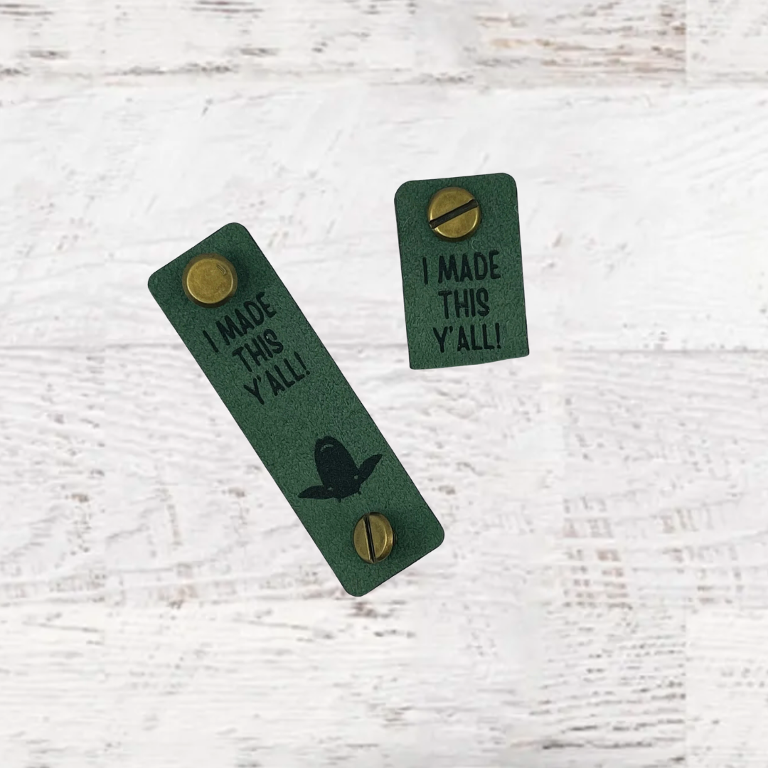 Ultrasuede (washable) labels that can be attached within seconds using a small phillips head screw driver or by hand with no sewing required