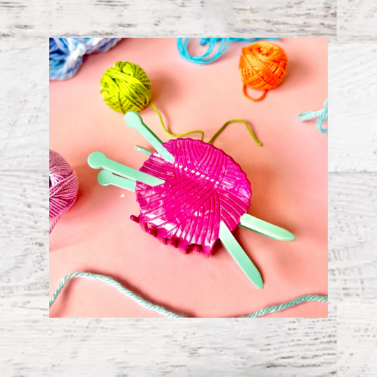 No more using knitting needles as hair picks! We've got a hairclaw perfect for keeping your hair up while hard at work on your yarn ball crafts!