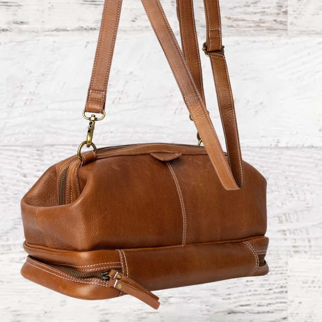 Project No. 45: This new shape really caught our eye! This elegant doctor-style bag is crafted from premium leather and features a dedicated compartment for your circular needles and multiple small pockets for notions. With an optional shoulder strap, it's designed for easy carrying wherever your creativity leads. Elevate your knitting experience with this luxurious and practical accessory. Separate compartment for circular needles and notions and adjustable shoulder strap H: 8.66 x W: 13.77 x D: 5.9”