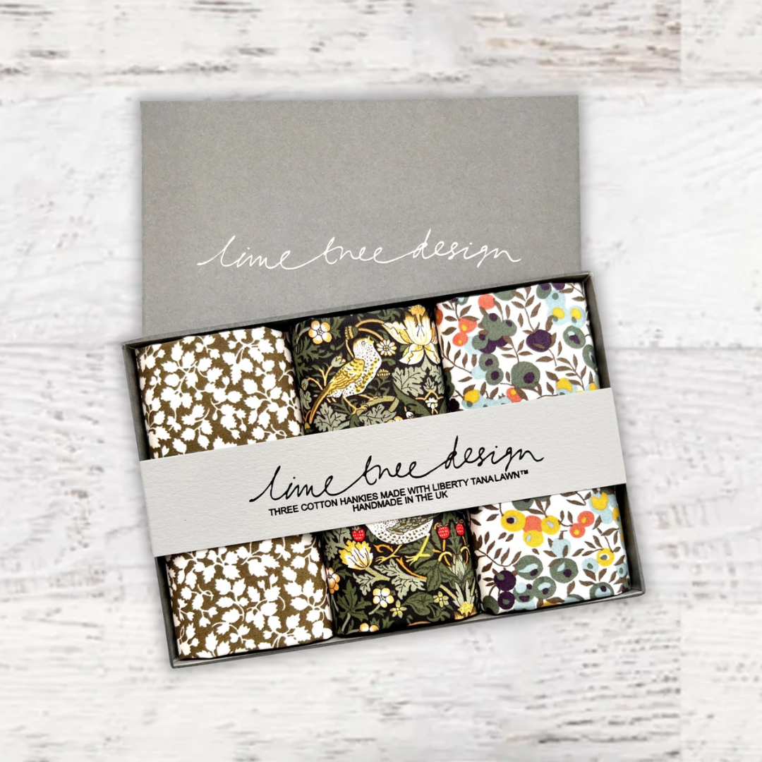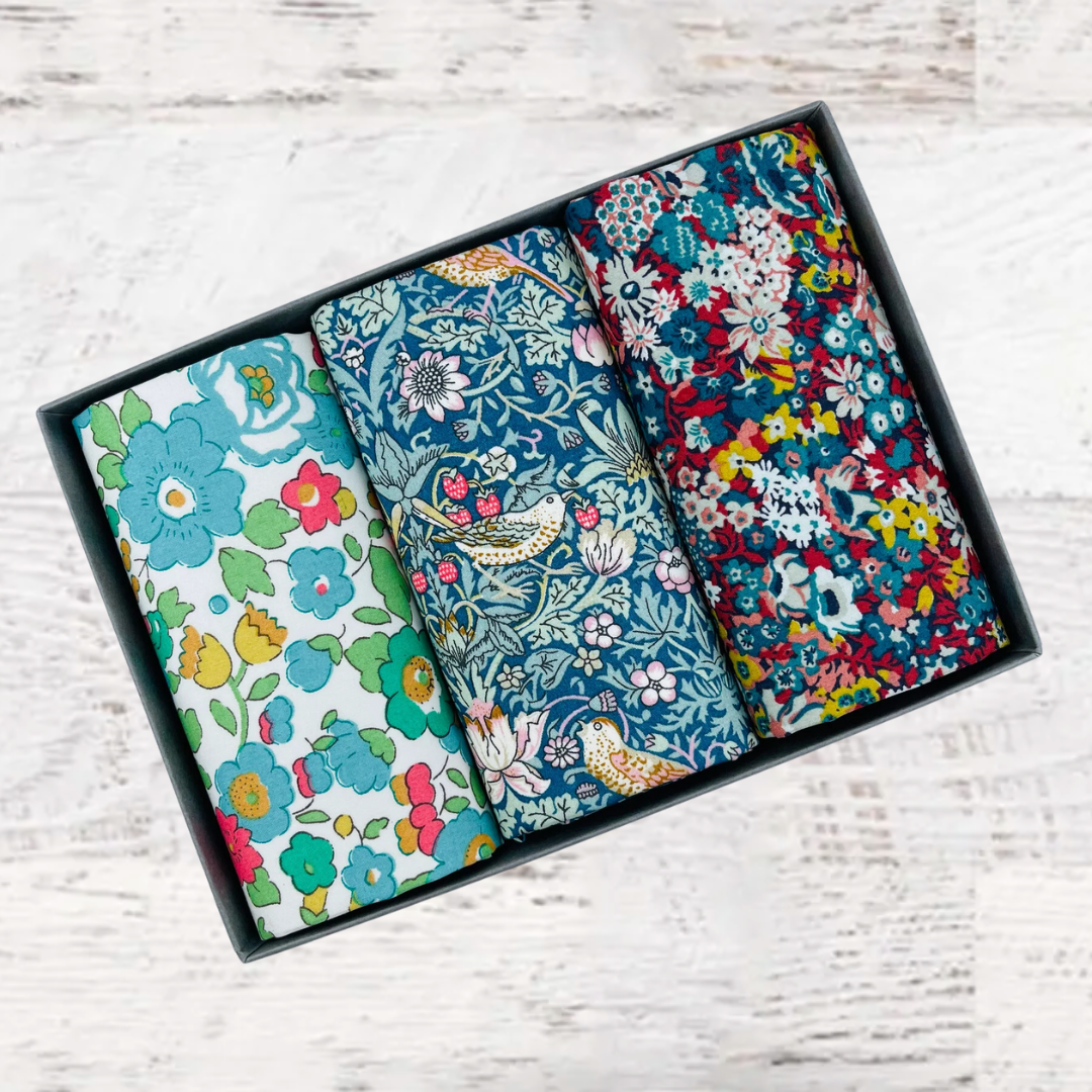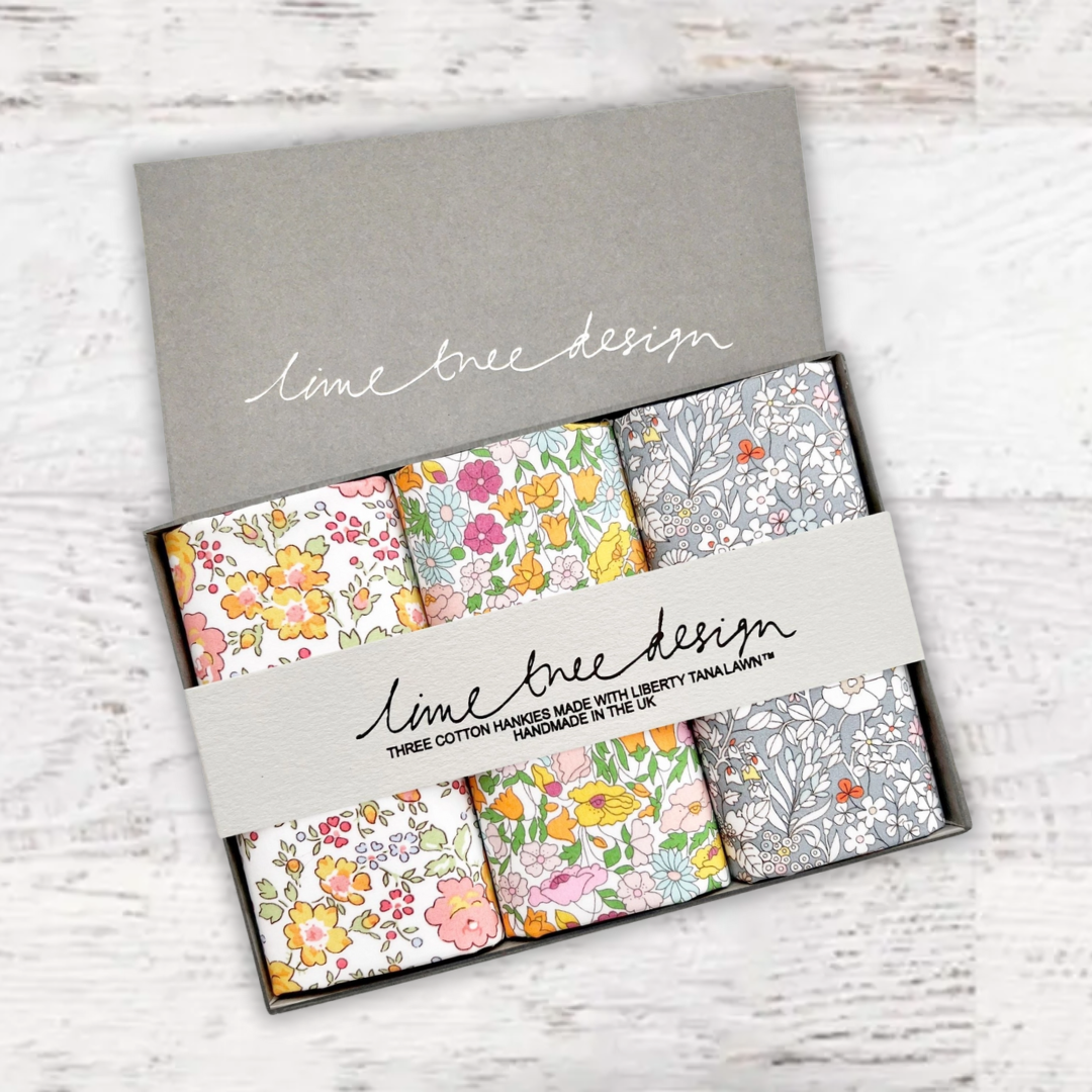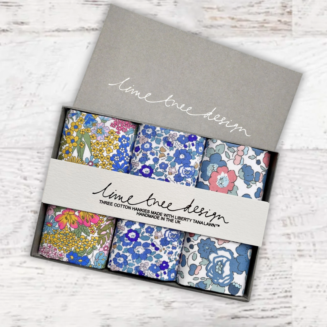 Beautifully packed in a set of three. Liberty of London Tana Lawn™ cotton is printed in the Liberty Printing Mill, located between Milan and Lake Como in northern Italy, Tana has a silk-like touch, unique print quality and striking color vibrancy. Hand trimmed in the UK. Ideal for weddings and groomsmen, Mother of the bride, Aunties or just as a present for someone special.