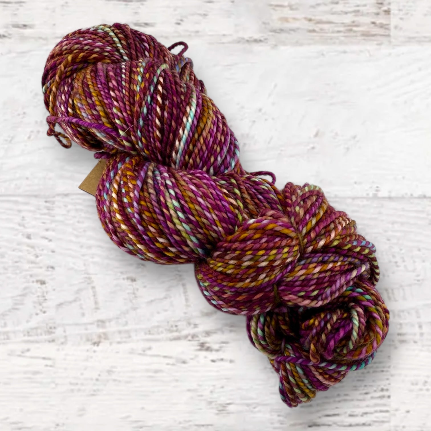 Marla is made from 2 strands of lighter-weight yarn that have been dyed separately and then plied together. When worked, Marla creates a marled fabric, where the colors are uniquely distributed. The resulting marled yarn can be high-contrast tweedy, or more subtly Tonal, or even have some of each in the same colorway.