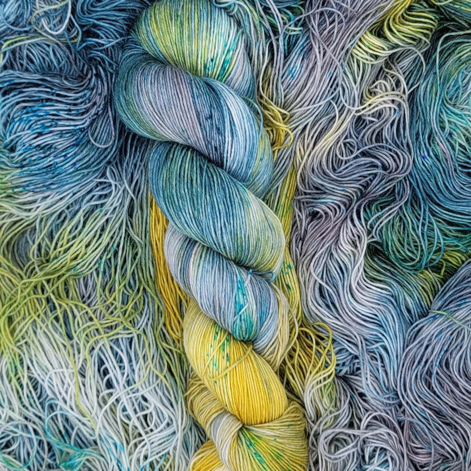 Dye Mad Yarns, the LGBTQ team of Ashley and Kelley, combines a love of Ohio history, politics, quirks, and absurdism with a keen sense of color and dye yarns that highlight the fun and whimsy in our inspirational subject: Ohio and the Midwest. Whether its landmarks, food, politics, experiences, or cryptids, Dye Mad is a love letter to the Midwest and its weirdness.  (Dye Mad's descriptor, not Fuzzy Goat's ;).