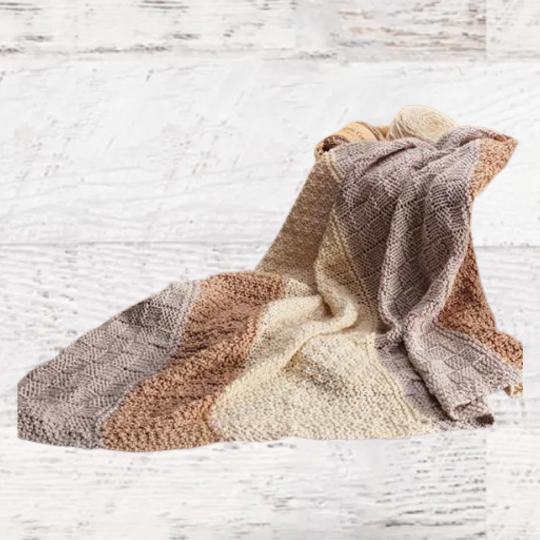 This sweet blanket uses three different stitches and three favorite shades of U.S. Organic Cotton mixed: Undyed Natural, Baby Doe and Silver. The kit contains the pattern. Knit using four different stitches: basket weave, zigzag rib, little checker and seed stitch for the border. The finished blanket, washed and blocked, is 40" x 30".