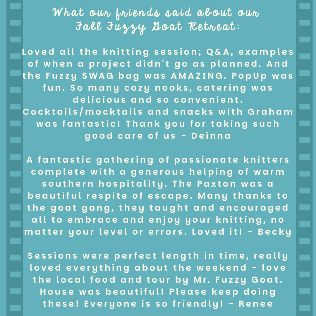 Weâre bringing back our beloved knitting retreatânew name, same Fuzzy Goat magic!